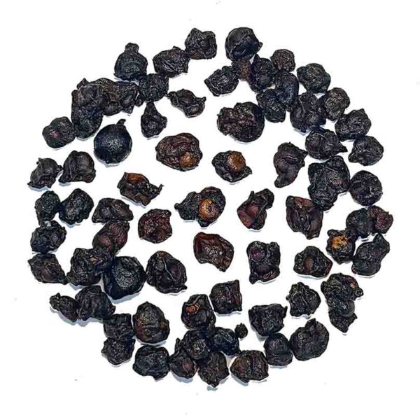 Mô tả cảm quan: Quả hình cầu, đường kính khoảng 2 – 8 mm, mặt ngoài nhăn nheo, màu đỏ tía hay nâu đỏ sẫm. Cùi có mùi đặc biệt, vị chua, ngọt. Sau khi đập vỡ, nhân hạt màu trắng ngà đến vàng nâu, ngửi thấy mùi thơm, vị cay và hơi đắng.